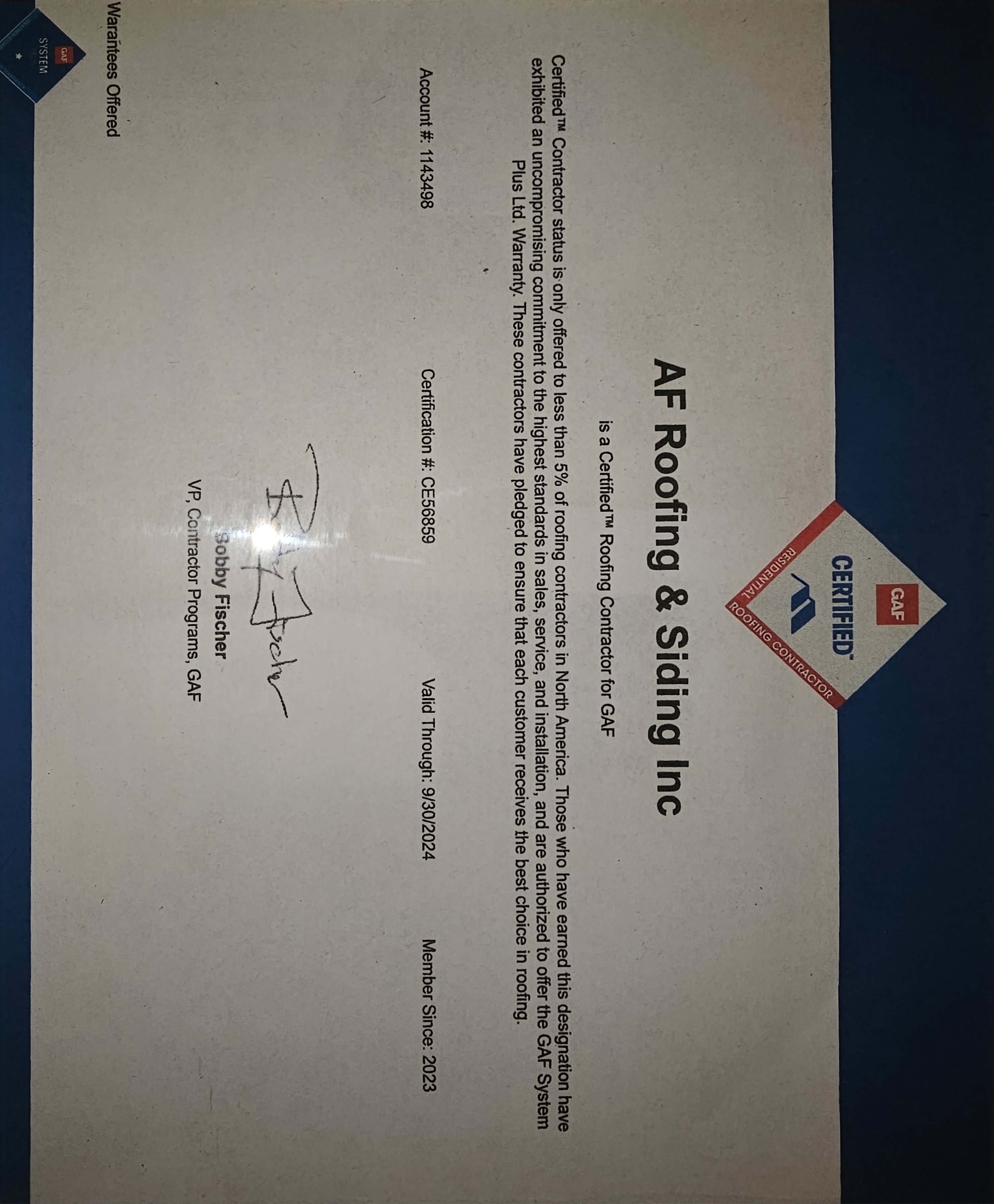 The experience, responsibility, quality, and professionalism come together in AF Roofing & Siding to provide top-tier solutions. With two decades in this familiar company, we have built a reputation as a trusted industry leader in residential and commercial roofing and siding services.